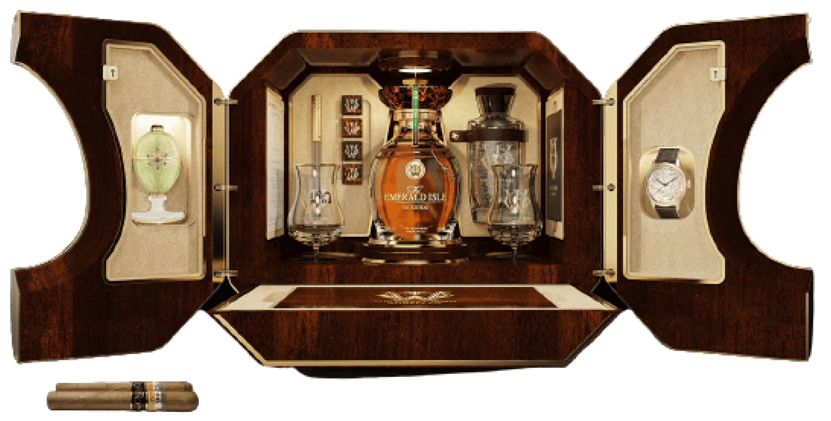 The first luxury whiskey set of The Emerald Isle Collection sold at auction for a record-breaking $2,000,000 and the remaining sets were launched at exclusive events across the world throughout 2021, achieving upwards of $3,000,000. Just two remain.